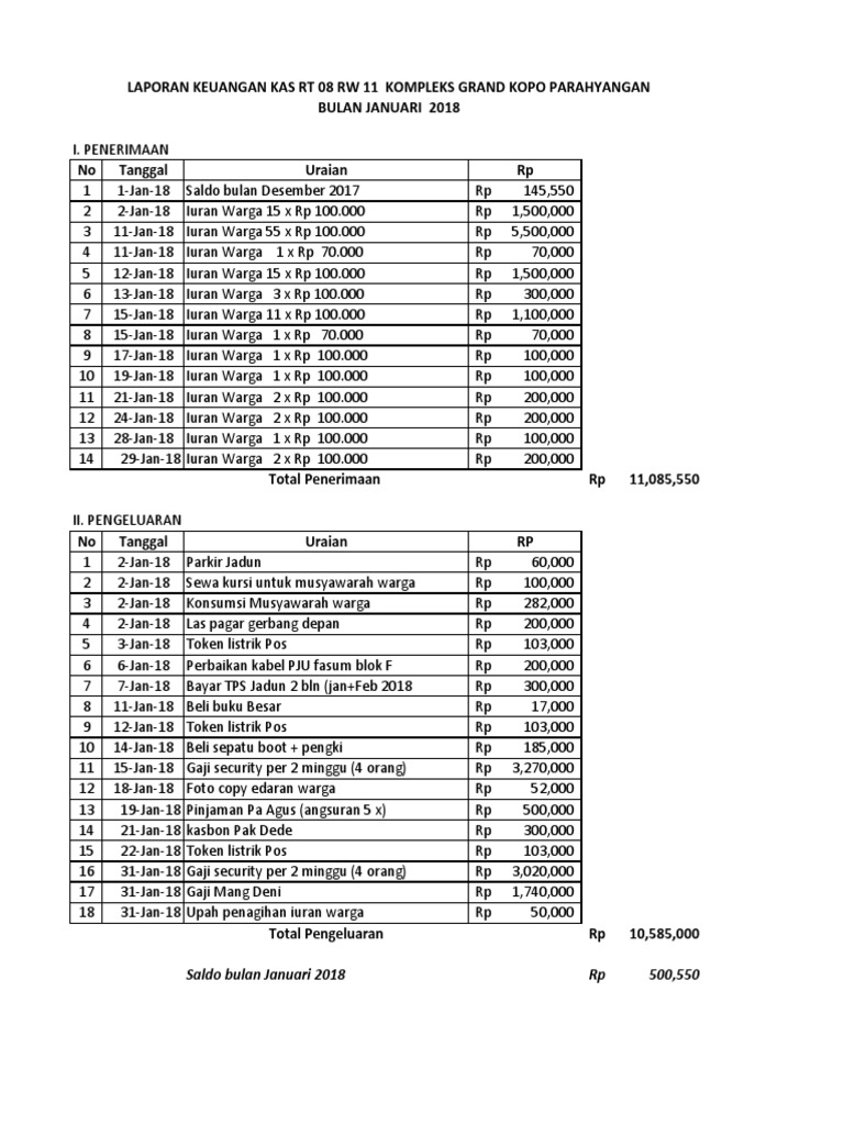 Contoh Laporan Pertanggungjawaban Uang Operasional Rt ... from imgv2-2-f.scribdassets.com Maybe you would like to learn more about one of these? We did not find results for: Contoh excel laporan kas rt. Check spelling or type a new query.